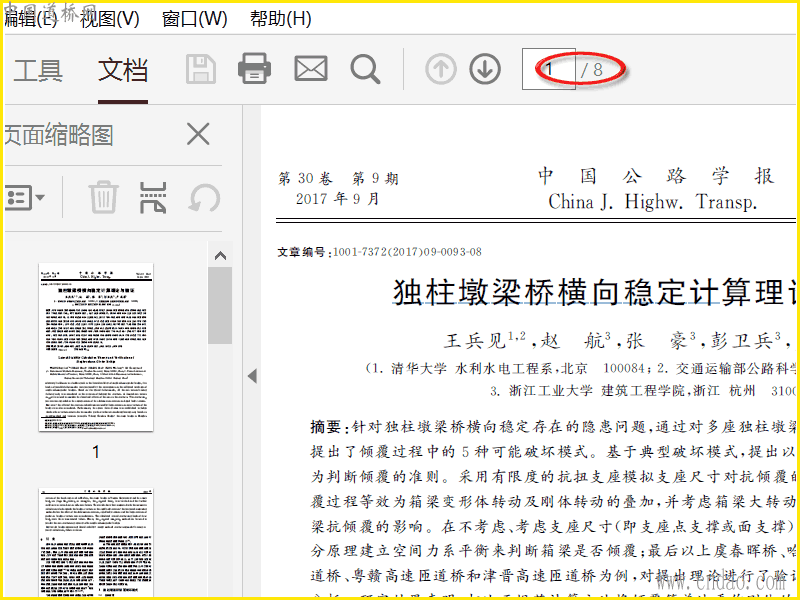 独柱墩梁桥横向稳定计算理论与验证 共8页
