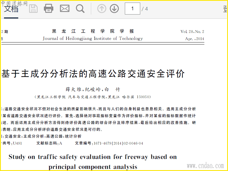 基于主成分分析法的高速公路交通安全评价_薛大维