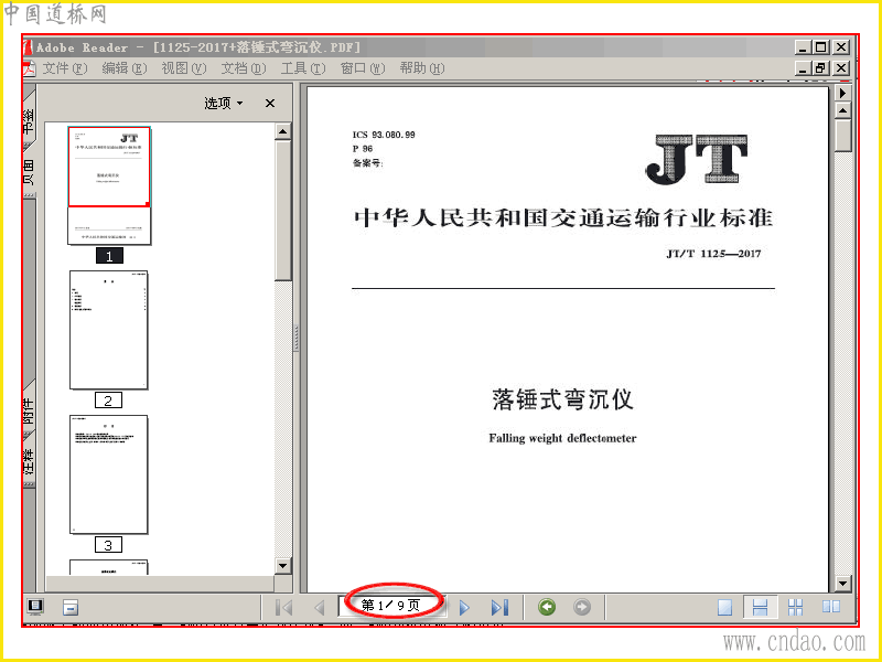 JT∕T 1125-2017 落锤式弯沉仪 pdf扫描文件共9页