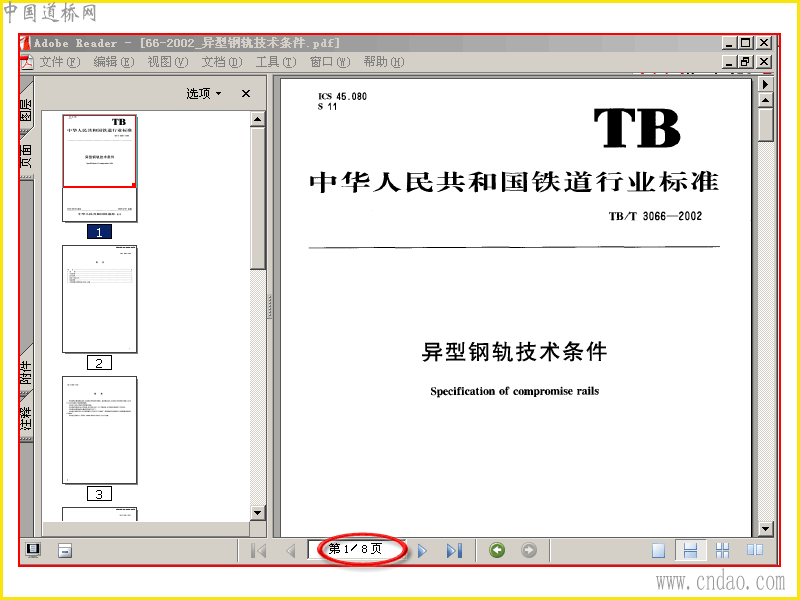 异型钢轨技术条件 pdf扫描文件共8页
